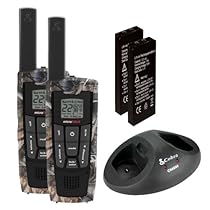 The Cobra CXR920 is a Micro TALK 2-way radio, two pack with up to a 30 mile range. This unit consists of 22 channels, 121privacy codes (38 CTCSS codes/ 83 DCS codes) and comes complete with 2 lithium ion battery packs, and a 2-port desktop mini-charger. This unit also features a 10 channel NOAA radio, hands-free operation (VOX), 2 Boom mics with "push to talk" button for hands free usage, VibrAlert silent paging, call alert (10 selectable tones), a backlit LCD display, a scanning function (channels/ privacy codes), a single pin speaker/ microphone/ charge jack, a 10 channel memory, selectable hi/low power in GMRS, key lock, roger beep (selectable on/off), key stroke tones (Selectable on/off) , a battery low indicator, battery/ power saver mode, signal strength meter, auto squelch, a maximum range extender, and a belt clip. This product comes in ROHS lead free, eco-friendly packaging.