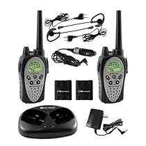 Midland GXT900VP4 5 Watt 42 Channel Waterproof GMRS Radios with NOAA Weather/All Hazard Alert. Includes Rechargeable Batteries, Dual Desktop Charger, Headsets and 12 volt Vehicle Adapter, Pair Packed. The GXT900VP4 features the standard 22 GMRS Channels and an extra 20 Channels. The GXT900 meets the JIS4 Standard of exposure to water for 30 minutes and features the Maximum Power allowed for GMRS Handheld Radios of 5 Watts, for up to a 30 Mile Range. The Weather Scan feature finds the nearest NOAA broadcast to stay up to date with the latest weather and hazard information. In addition to important weather announcements, All Hazards Alert means the GXT900VP4 will receive other emergency announcements such as Child Abduction (Amber Alert), Nuclear Power Plant Warnings, Biological Hazard, Fire, and Landslide Warnings. The GXT900VP4 features Voice Scramble to add security to conversations and Direct Call which allows you to reach one person in your group without alerting the others. A Vibrating Alert for silent notification, 9 Level E Vox for Hands Free operation, 142 Privacy Codes, Scan of the 42 Channels, Hi/Med/Low Power Settings, 10 Call Alerts, Keypad Lock, and Battery Save Circuit. Unlike other GMRS radios on the market that use lithium batteries, Midland's Dual Power Option allows the use of the included rechargeable batteries or 4 "AA" batteries (Not included).